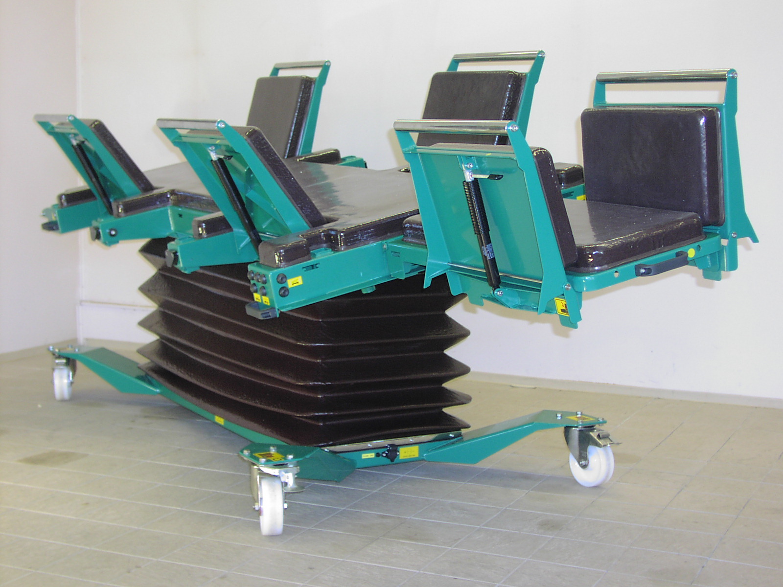 Height can be controlled steplessly. Head support angle can be changed in both directions. Mobility single-handedly even when loaded.